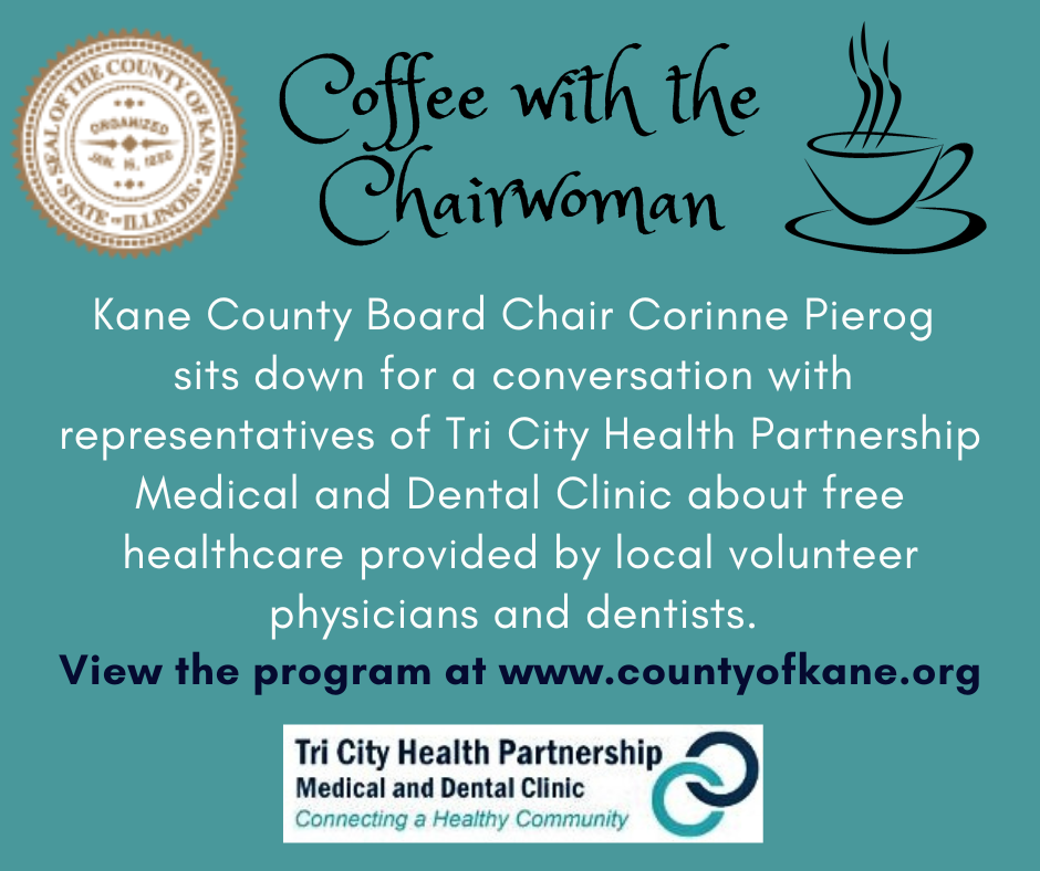Coffee with the Chairwoman discusses the important work Tri City Health Partnership does in providing free medical and dental care in Kane County. View the program at www.countyofkane.org.