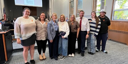 The family stood for photos at the end of the remembrance, including a lighthearted picture requested by Kane County Board Member Michelle Gumz, who said Berman would have appreciated the humor.