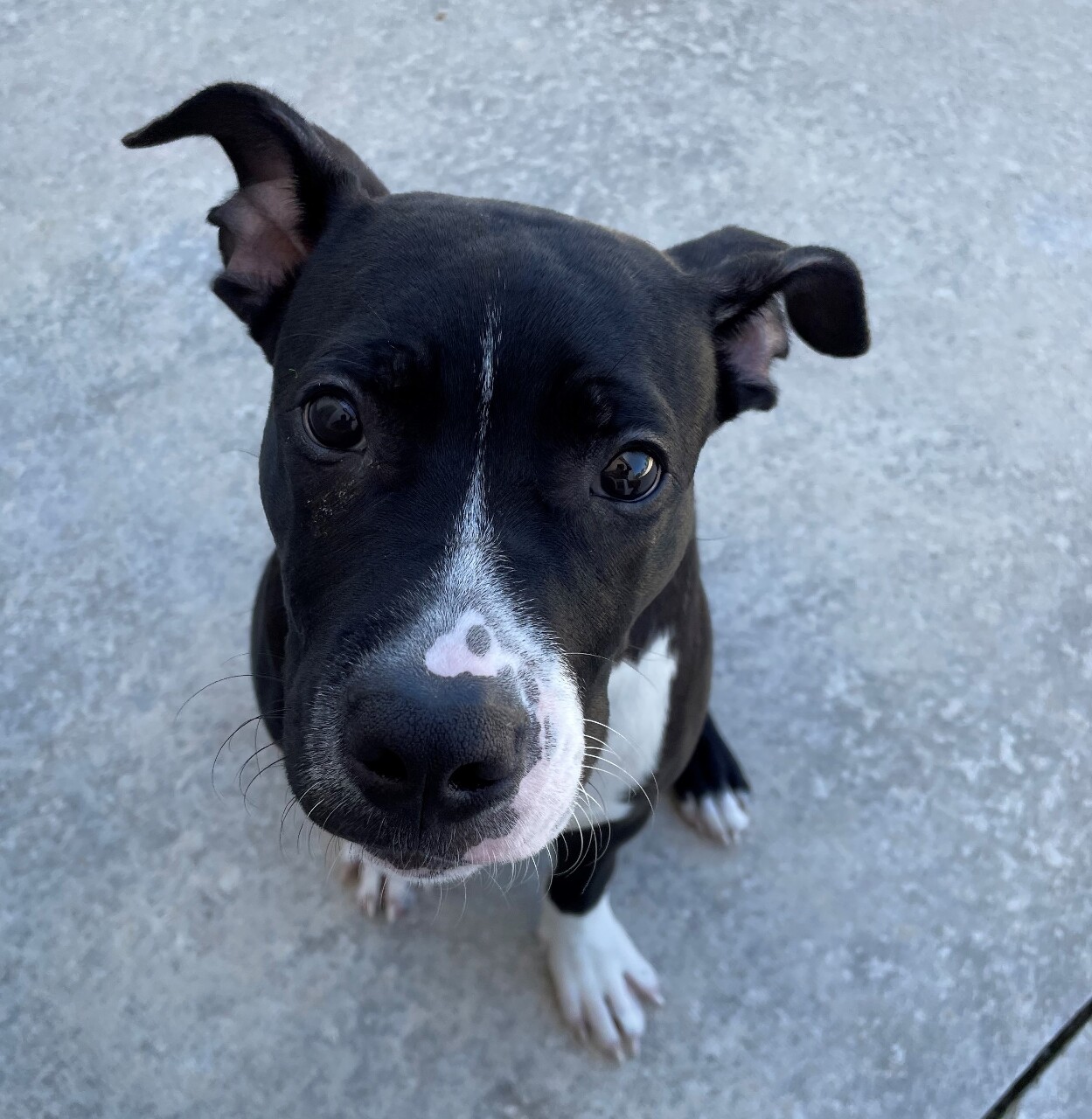 They tell me I'm a neutered black and white Pit Bull Terrier, which is cool, I guess, but I don't know what that means. I just know that I love it when I get taken for walks. I walk really good on a leash even though sometimes I pull and jump around. When the person I walk with tells me to stop pulling, I will 'cause I'm smart and I listen.