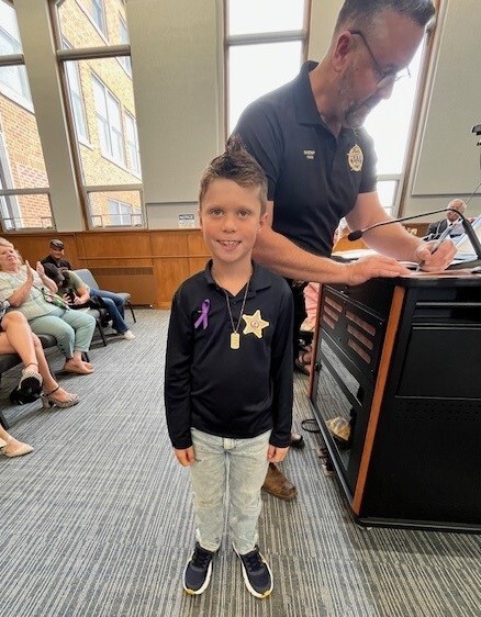 Eight-year-old Ace Holder was honored for his bravery and presence of mind during a family crisis on May 28, 2025. When his grandmother, and sole caregiver at the time, suddenly collapsed and became nearly unconscious in his room, Ace acted immediately. He dialed 9-1-1 and clearly communicated the emergency to dispatchers at KaneComm, Kane County's emergency communications center. Thanks to his quick response, Kane County Sheriff's deputies and emergency medical personnel arrived promptly and transported his grandmother to Northwestern Medicine Delnor Hospital for treatment of non-life-threatening injuries.