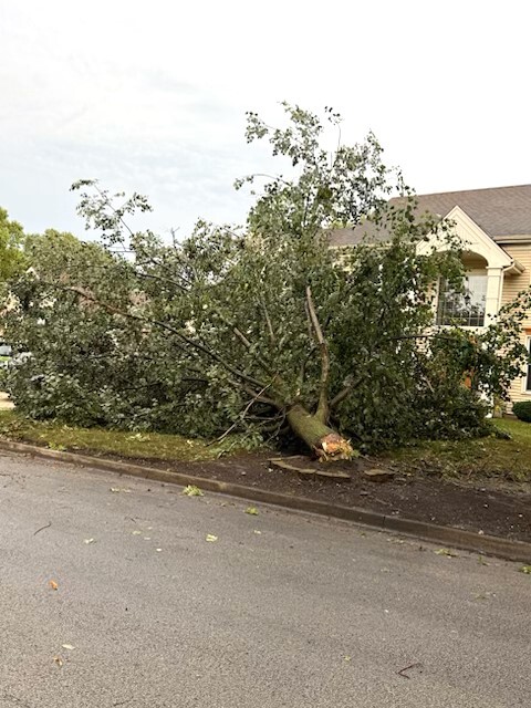 The first round of storms on the afternoon of the 16th produced large hail and damaging winds, with the most severe impacts near Belvidere, Cary, Sugar Grove, Palatine, and Romeoville, where gusts likely exceeded 70 mph. Portions of Aurora also experienced significant wind damage, primarily from downed trees and power lines.