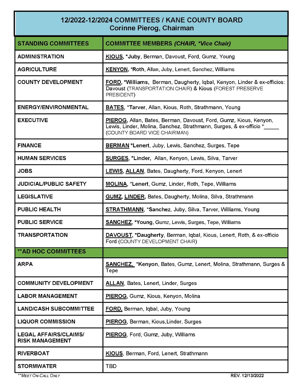 Kane County Board members have voted to approve committee assignments for 2023-24. The County has 13 standing committees that address issues ranging from finance, public safety, jobs, transportation to public health.