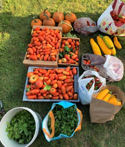 The vegetables and herbs- including different varieties of tomatoes and peppers, pumpkins, summer squash, cilantro and basil- were donated thanks to the work of Kane County staff volunteers who developed the garden on the Geneva campus.
