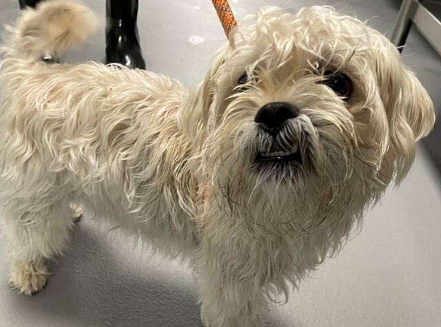 His name is Archie and he's an all-white, neutered, Shih Tzu-mix, about 2-years-old. He was found as a stray. He had an owner, but evidently, they didn't want him anymore as he was never claimed.