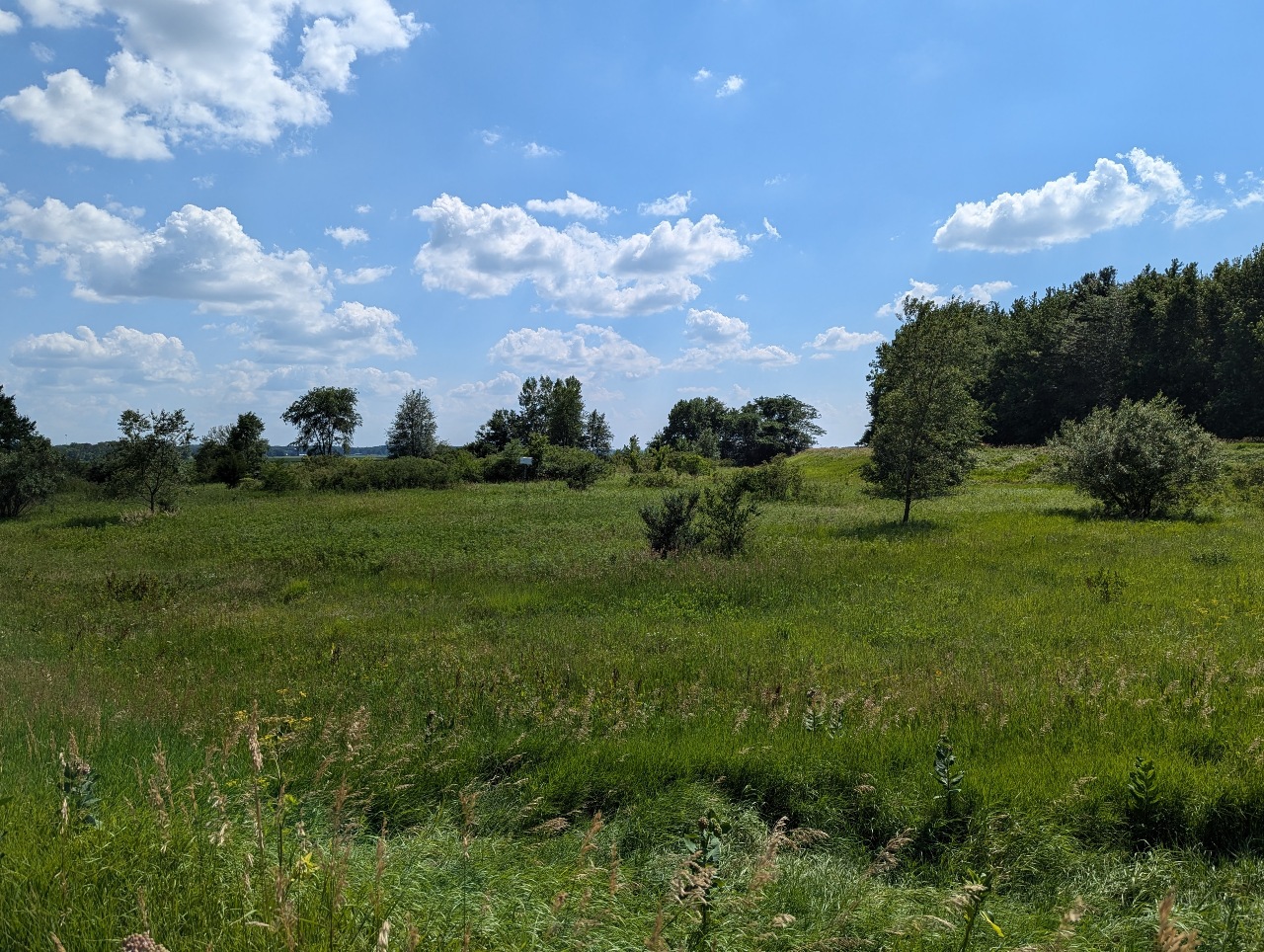 But as we poked around the (cicada-less) scenery we saw bits and pieces of a history everyone could relate to: sandy soil, long ago deposited by receding glaciers; mountain mint and a Dichanthelium panic grass, found alongside a soybean field but serving as reminders of the prairie that once predominated; and a pocket woodland featuring a healthy growth of poison ivy around its perimeter along with an understory of sassafras, fading spring wildflowers and bright green rattlesnake ferns.