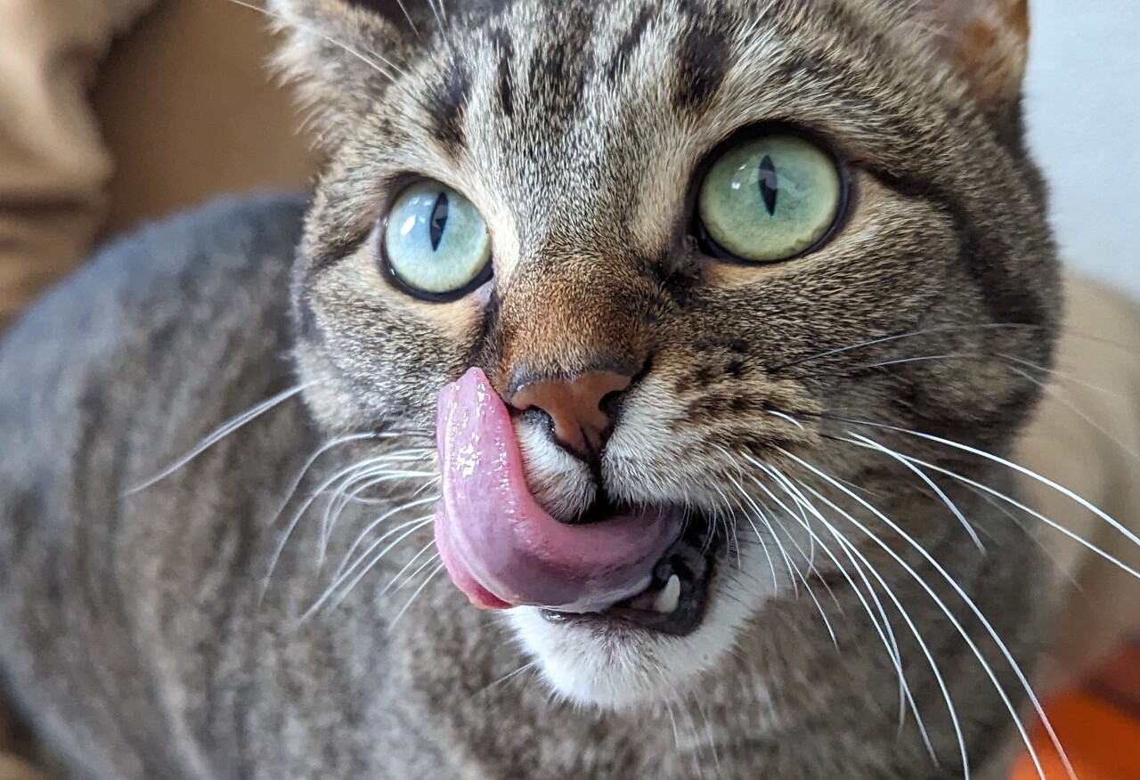 She is a vibrant little cat whose soul smiles whenever she sees someone because she knows that person will give her some pets and maybe a tummy rub.