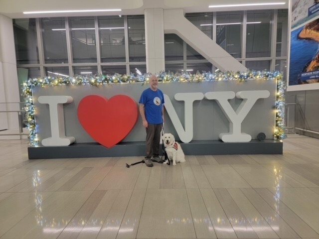 Peters traveled to New York with his latest trainee, Maui, to attend the taping of the show. Check out the photos below to see highlights of their adventure through the airport and at the show!