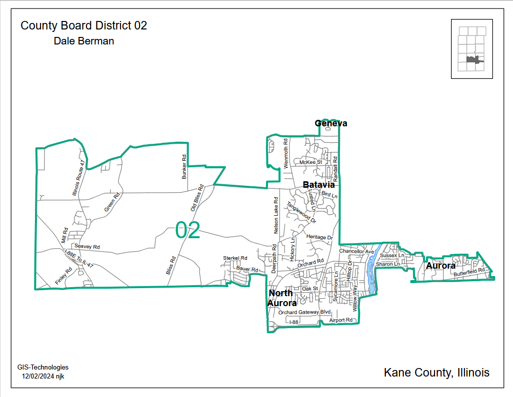 Kane County is accepting applications for the position of Kane County Board Member for District 2 serving portions of North Aurora, Batavia, Geneva and Aurora. This vacancy is due to the passing of Board Member Dale Berman.