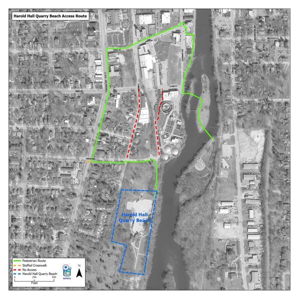 There have been questions about alternative routes to Hall Quarry Beach due to the ongoing construction on Water Street. Here are the suggested routes for pedestrians and bicyclists from the City of Batavia and the Batavia Police Department: