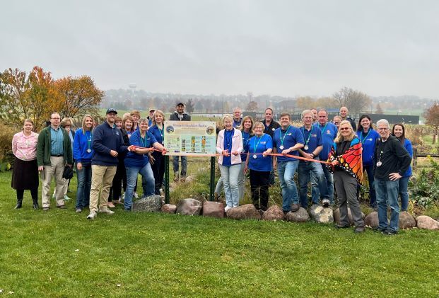 The St. Charles Breakfast Rotary at St. Charles Park District cut the ribbon on October 25 at Hickory Knolls Discovery Center in St. Charles, dedicating the Monarch Waystation both organizations worked on.