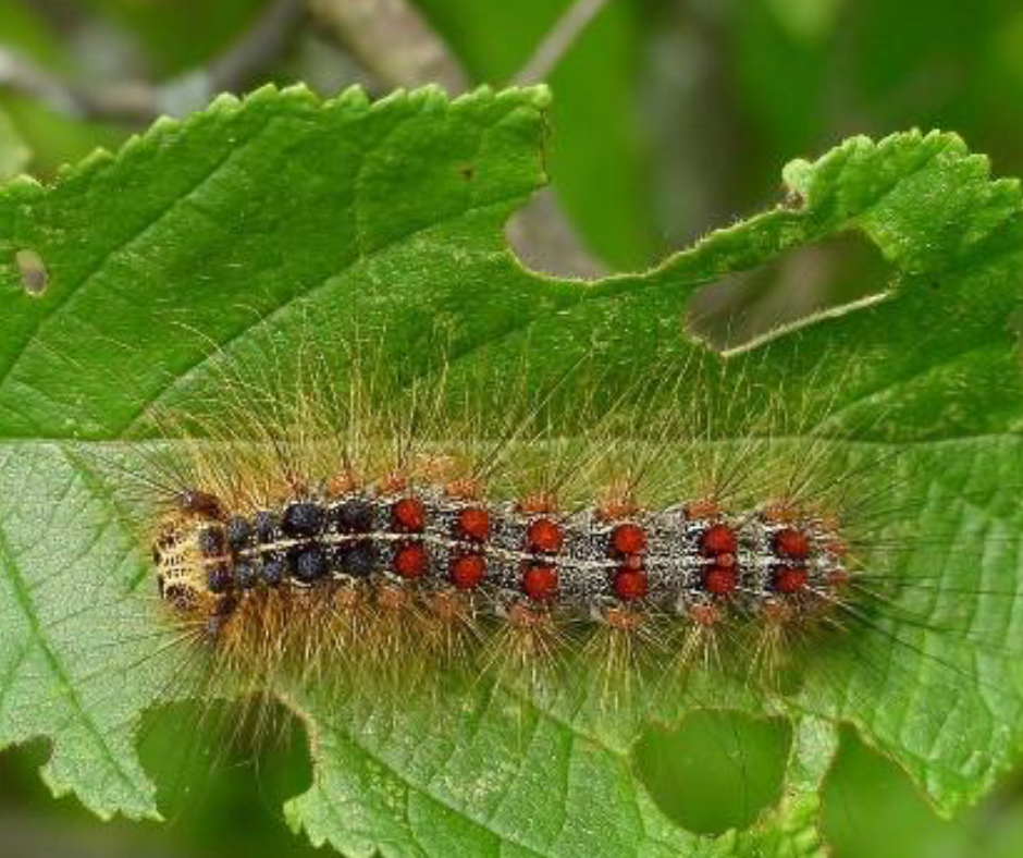 Lymantria dispar, aka Spongy Moth, is a non-native pest that feasts on more than 250 species of trees and shrubs, but its preferred food source is oak leaves. Large populations are capable of stripping plants bare, leaving them vulnerable to secondary insect and disease attacks. Severe defoliation also can cause tree death.
