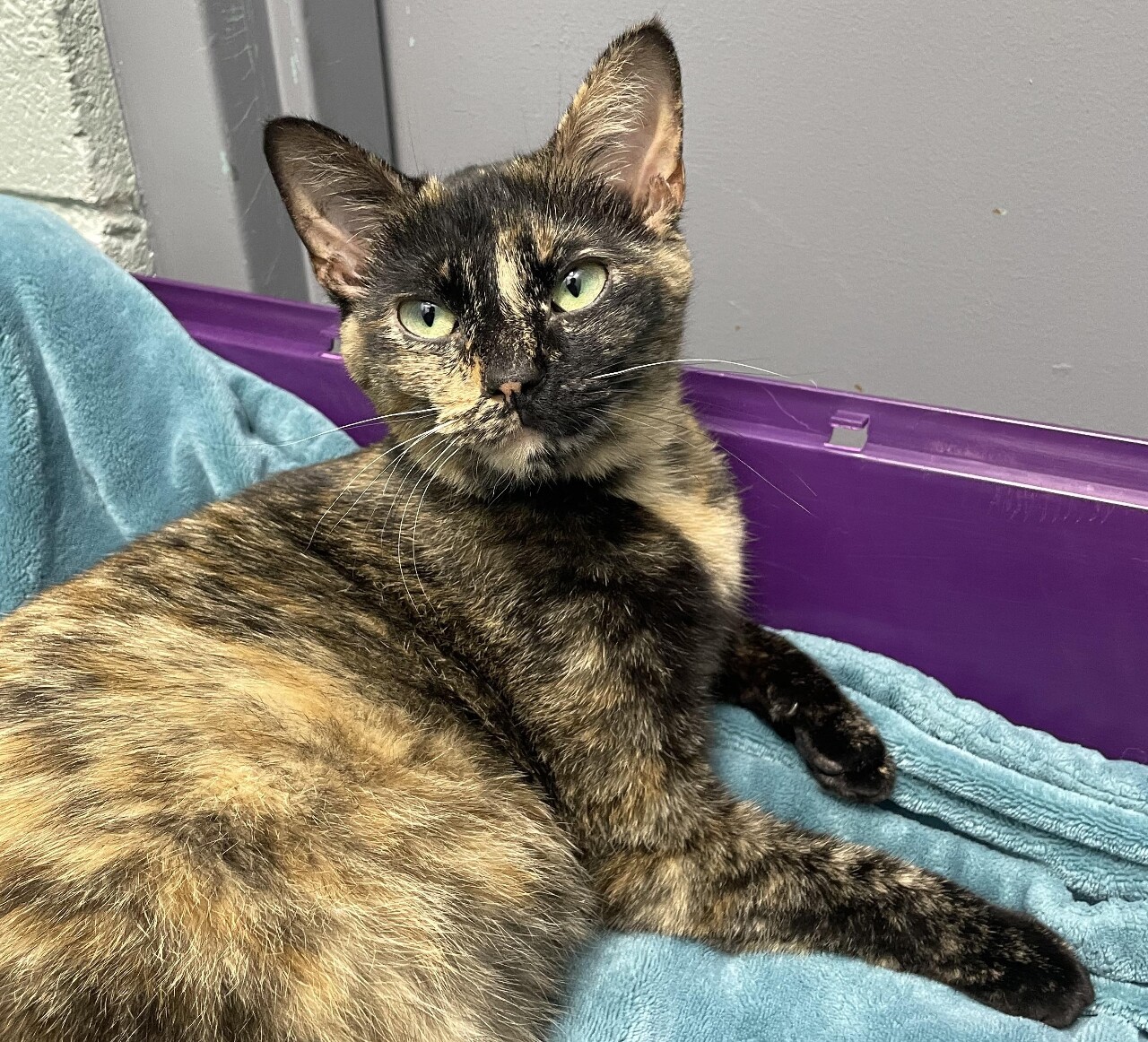 Putting all that aside, however, Spezi, a 1-year-old, spayed, tortie Domestic Shorthair, wants to let you know that when she arrived at KCAC, she didn't even have a name other than “stray."
