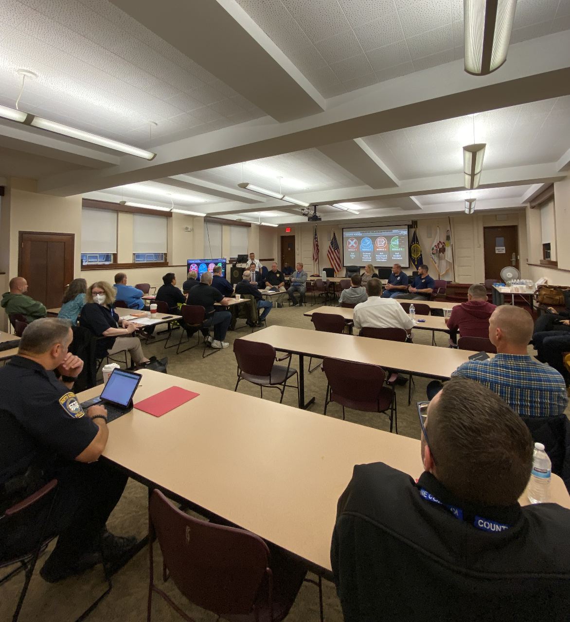 Kane County recently hosted two dozen emergency responders for a safety seminar offered free by the Illinois Commerce Commission. Participants learned to use the proper safety techniques while investigating or responding to a grade crossing collision or trespasser incident, in addition to maintaining on-scene safety unique to the railroad environment.