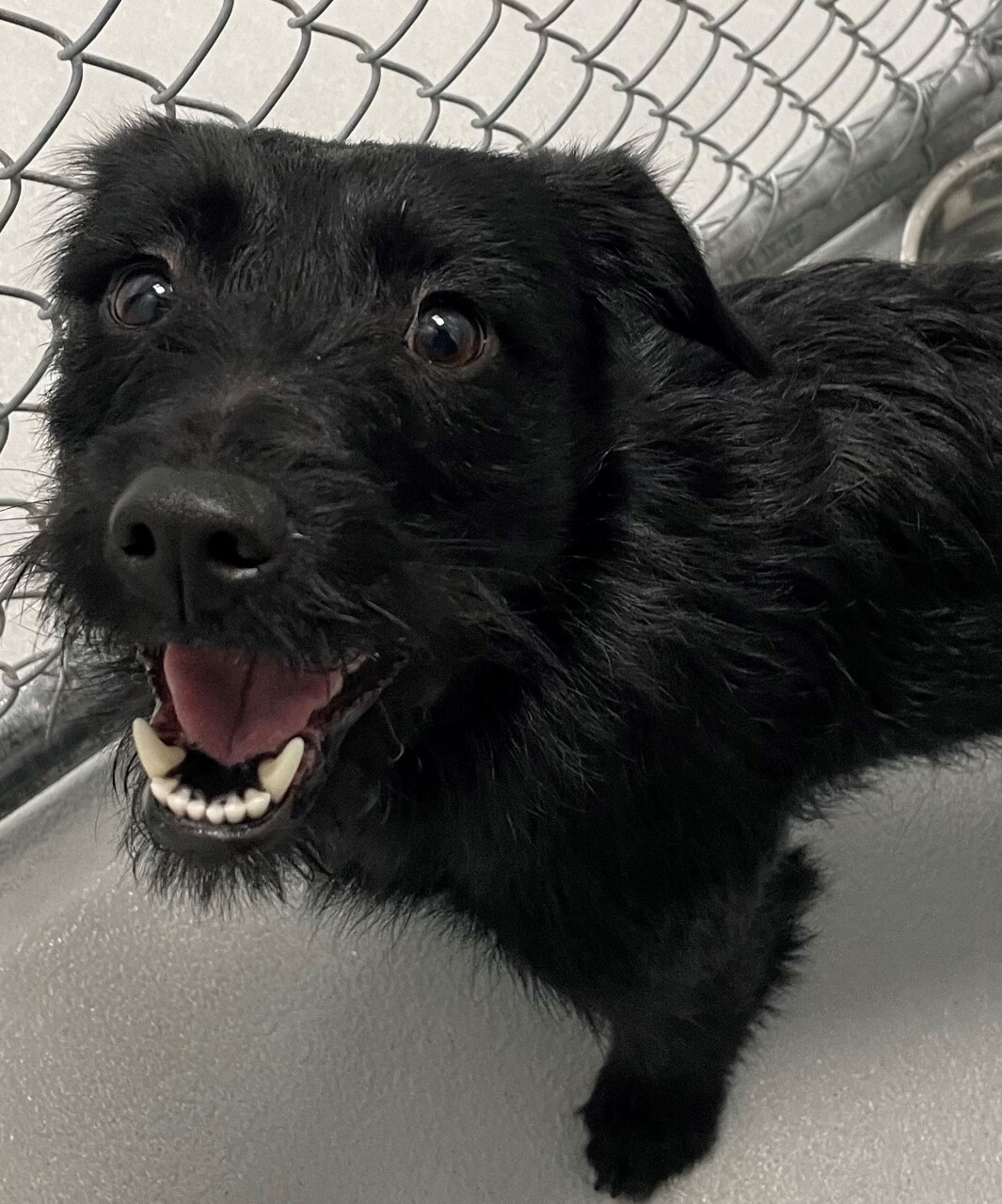Her name is Willow, and she's a 2-year-old spayed female, all black, terrier-mix found as a stray. She looks and acts like a puppy even though she's a couple of years past. She more than likely, for whatever reason, wasn't given the training she needed when she was a puppy, so now she is just trying to make sense of how to be a dog.