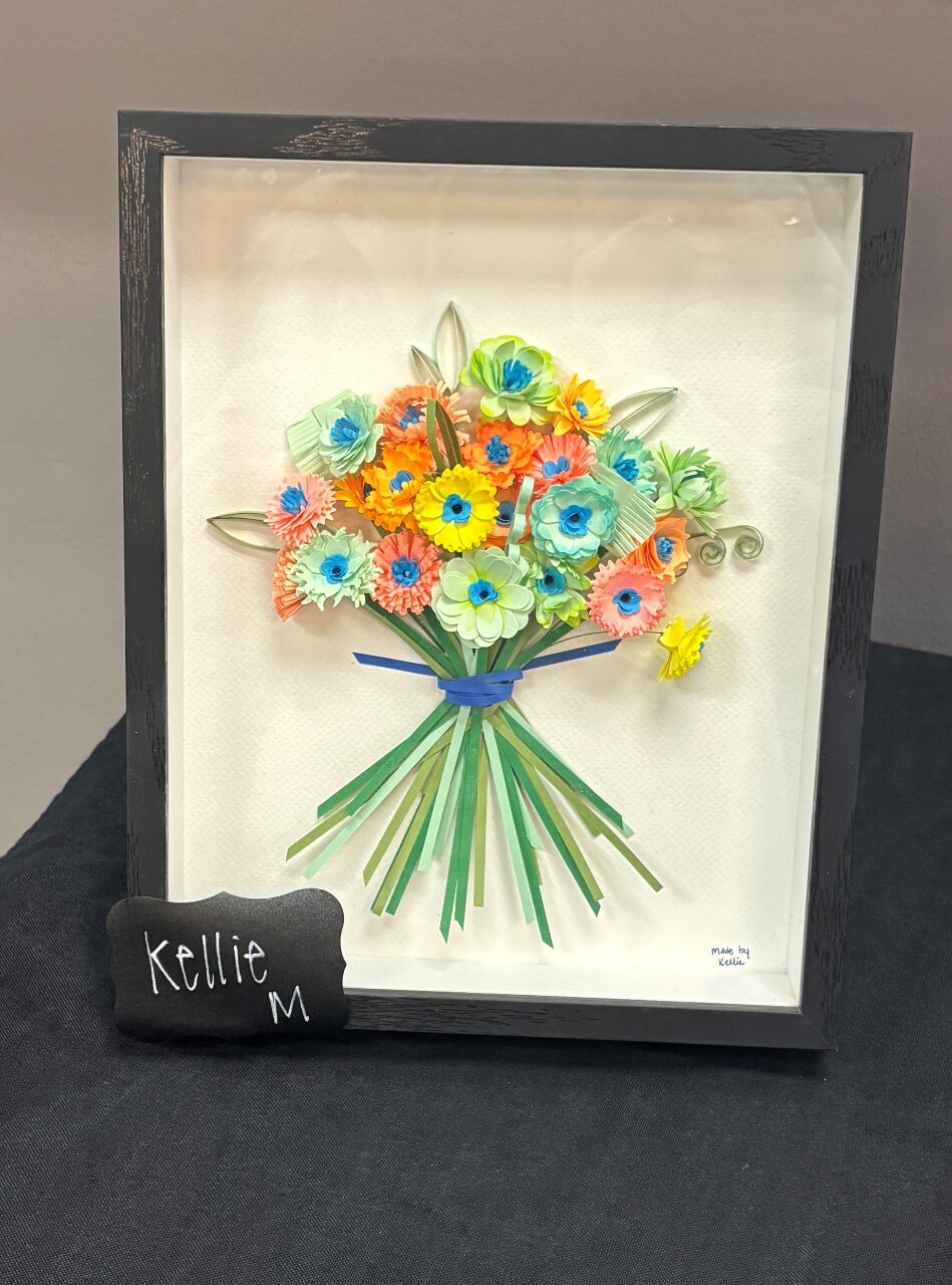 Now sober and nearing the end of breast cancer treatment, she displayed a painting of pink roses accented with small blue flowers and surrounded by handwritten quotes. The pink symbolizes breast cancer awareness and survival. The blue represents recovery.