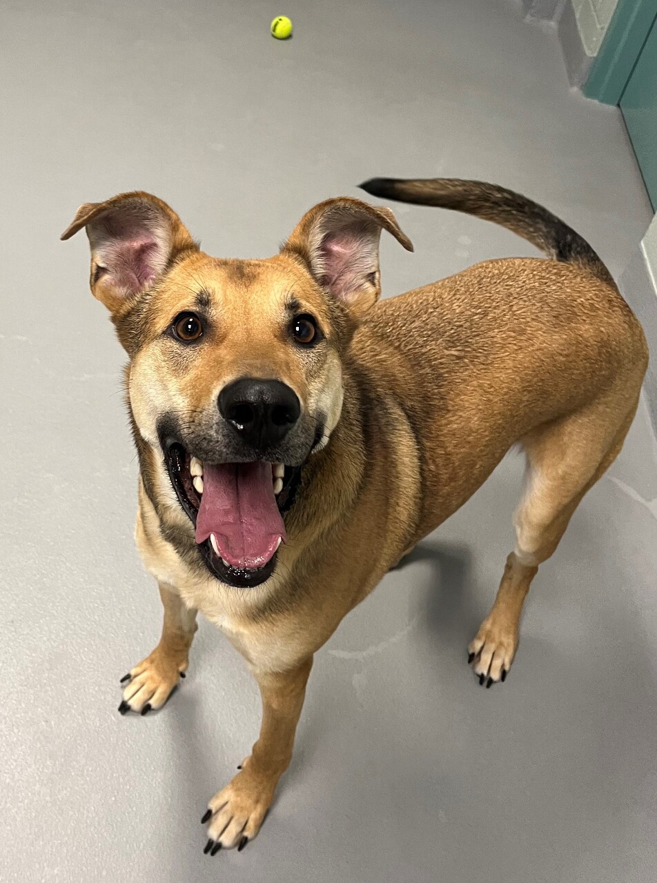 Finn, a 2-1/2-year-old German shepherd owner-surrendered to KCAC is a great dog! Very sweet. Absolutely loves people!
