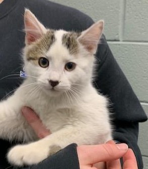 Mothman is one of the most laid-back kittens residing at KCAC. On occasion he will chase a feather at the end of the cat fishing pole, run down the hallway after a toy mouse or bouncing ball, but it's getting petted and sleeping that makes him the happiest.