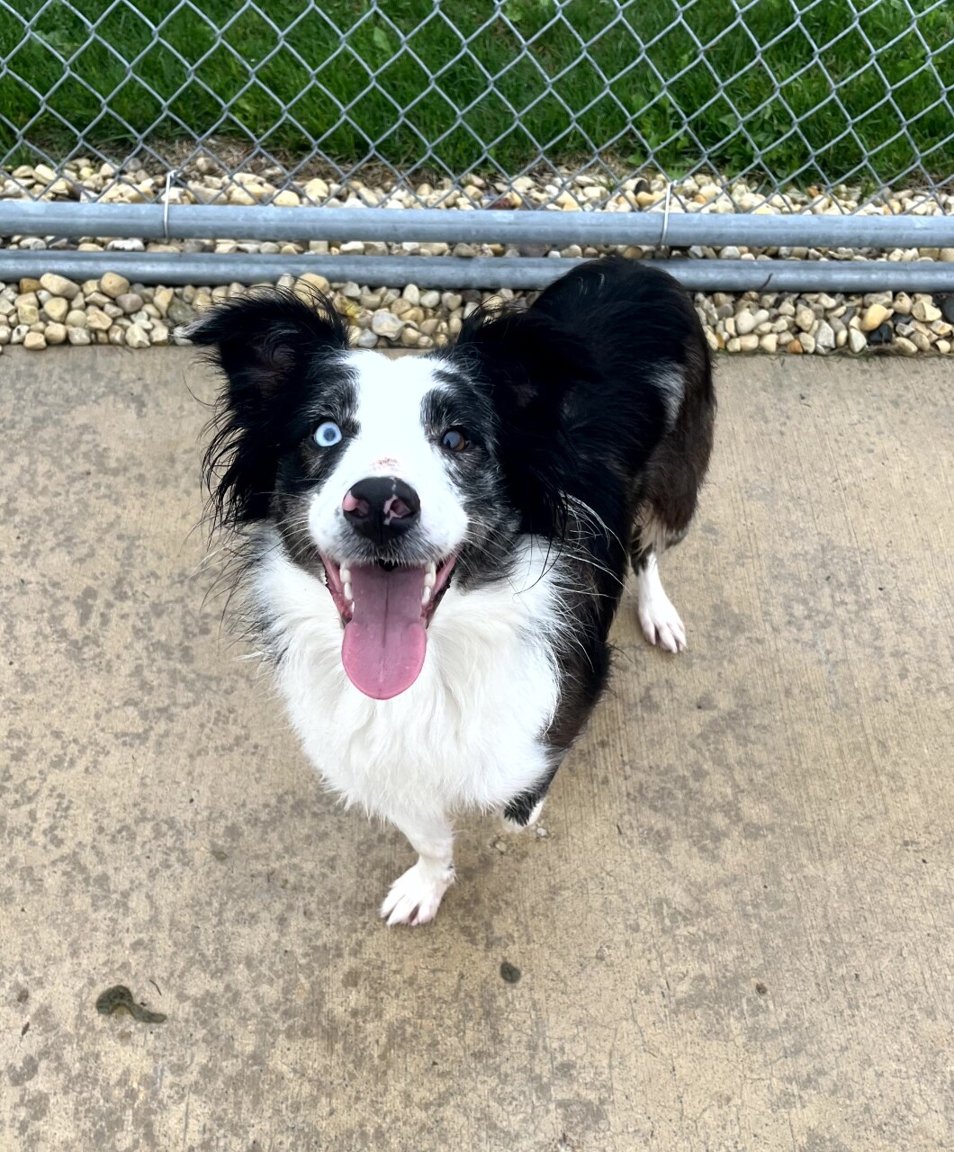 Triggers, a 1-year-old, spayed black and white Australian Shepherd mix, is looking for a family that will understand how excited she is just to be alive. In fact, from the moment she realizes there are humans willing to play with her, she becomes a non-stop energizer bunny.