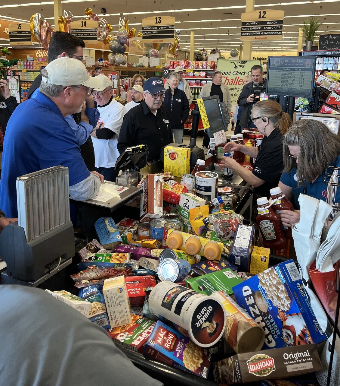 The timed event gives local officials several minutes to move through the store and collect as many groceries as possible for food pantries they choose to support. All items are purchased by the Kane County Farm Bureau and donated.
