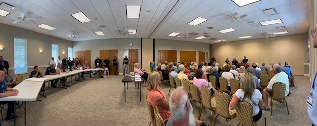 Elgin's comfort dog mingled with the crowd at the community meeting as well.