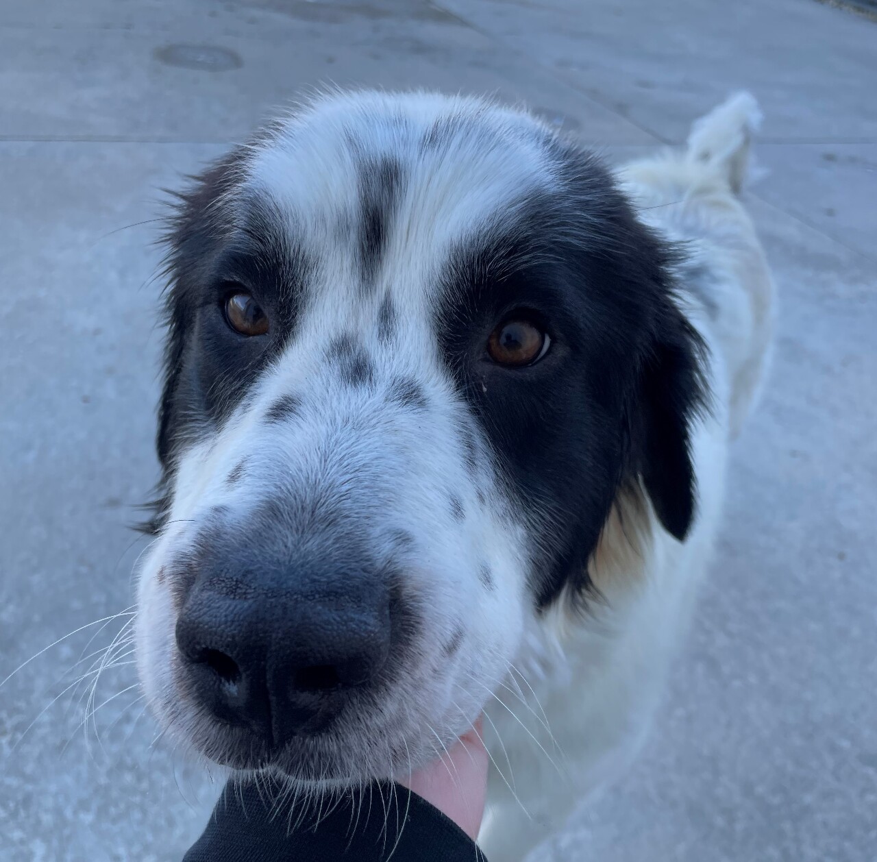 Jani is a white and black, spayed 3-year-old Great Pyrenees and a very laid-back dog. She was found as a stray and eventually surrendered to KCAC. All she wants to do is cuddle and attempt to sit in your lap.