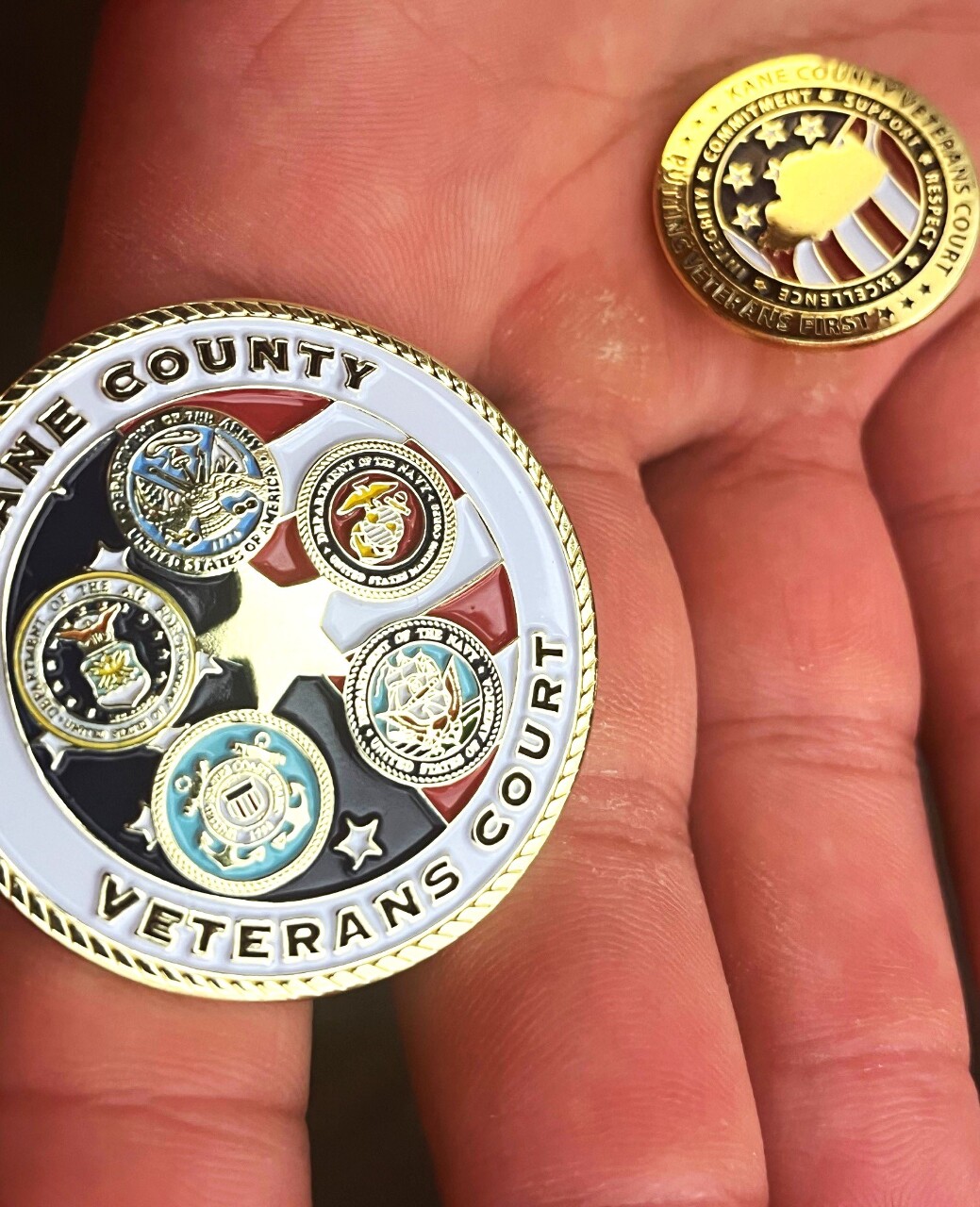 At the graduation ceremony, both men were also honored with a quilt from the organization Illinois Quilts of Valor (https://www.qovf.org/state-coordinators/illinois/), a challenge coin and a recognition pin. Yet, the biggest reward came at the conclusion of the event when a Kane County judge officially dismissed their cases.