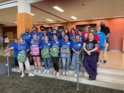 Each bag includes school supplies kits and mental health/agency information. Bags were put together during the week of July 26 at Elgin Community College with the help of their Student Life volunteers.