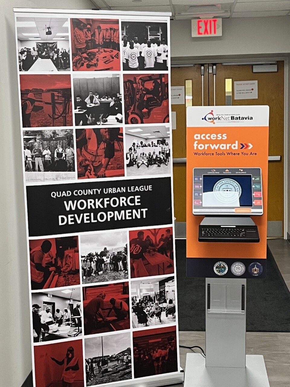 On Tuesday, September 30, 2025, workNet Batavia, in partnership with the Aurora Quad County Urban League, hosted a ribbon cutting ceremony to unveil the kiosks. The first four will be installed in Aurora at the Aurora Quad County Urban League offices, Santori Public Library, West Branch Aurora Public Library, and Hesed House.