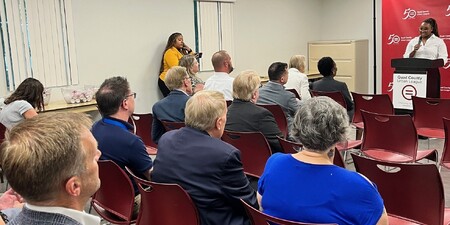 Also present for the official unveiling of the kiosk were Kane County Board members Anita Lewis—who chairs the County Board’s Jobs Committee and was instrumental in helping secure the grant that funded the job kiosks—along with fellow Board members Bill Tarver, Mavis Bates, and Sonia Garcia.